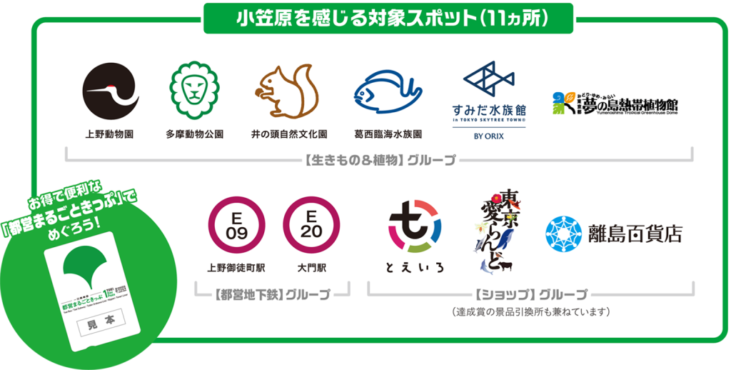 都営交通を利用して、動植物園・水族館・ショップ・駅など全11カ所をめぐりながらスタンプを集めると、