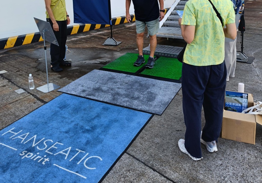多くの方が下船され、街中の散策等、思い思いに小笠原を楽しまれていたようです。外来種対策の靴底洗浄にもご協力いただき、ありがとうございます。