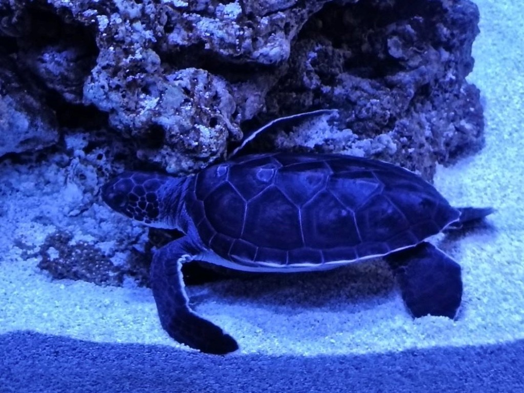 すみだ水族館では、今年8月に小笠原で生まれたアオウミガメの「朝日」と「夕日」がすくすく成長中です!この2頭の名前は、小笠原小学校5年生のみなさんが考えたものです。とても素敵ですよね。